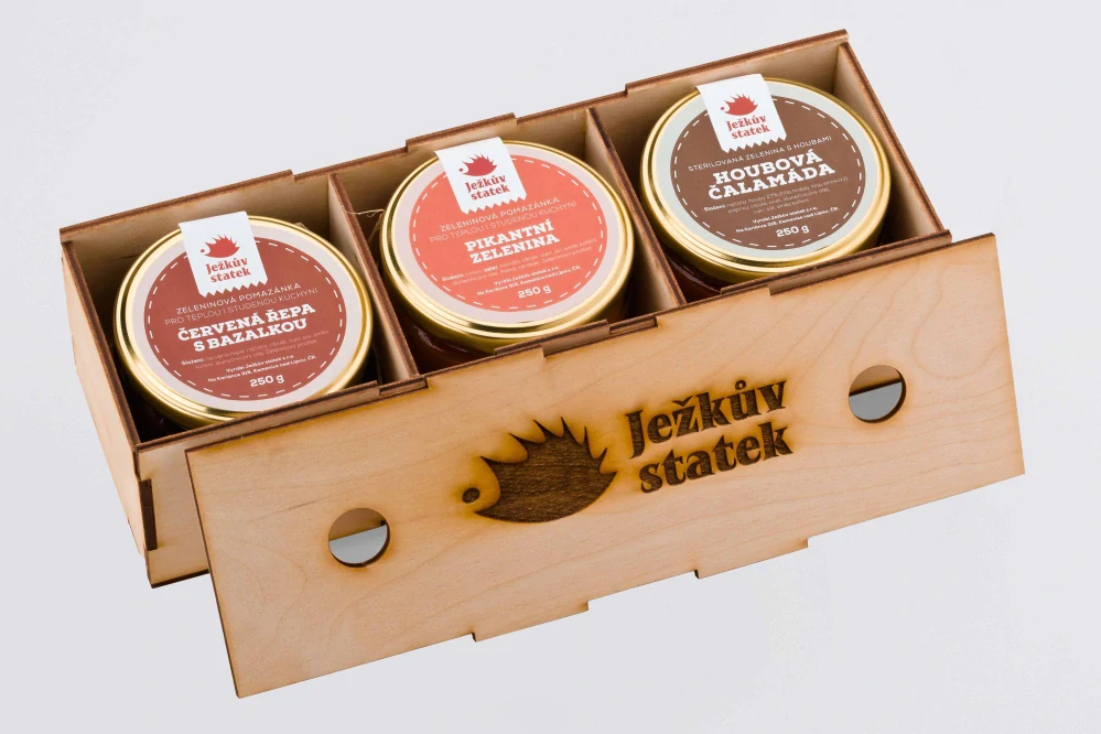 Dárková dřevěná krabička se 3 zeleninovými pomazánkamiSkladem379 Kč/ ks338 Kč bez DPH
