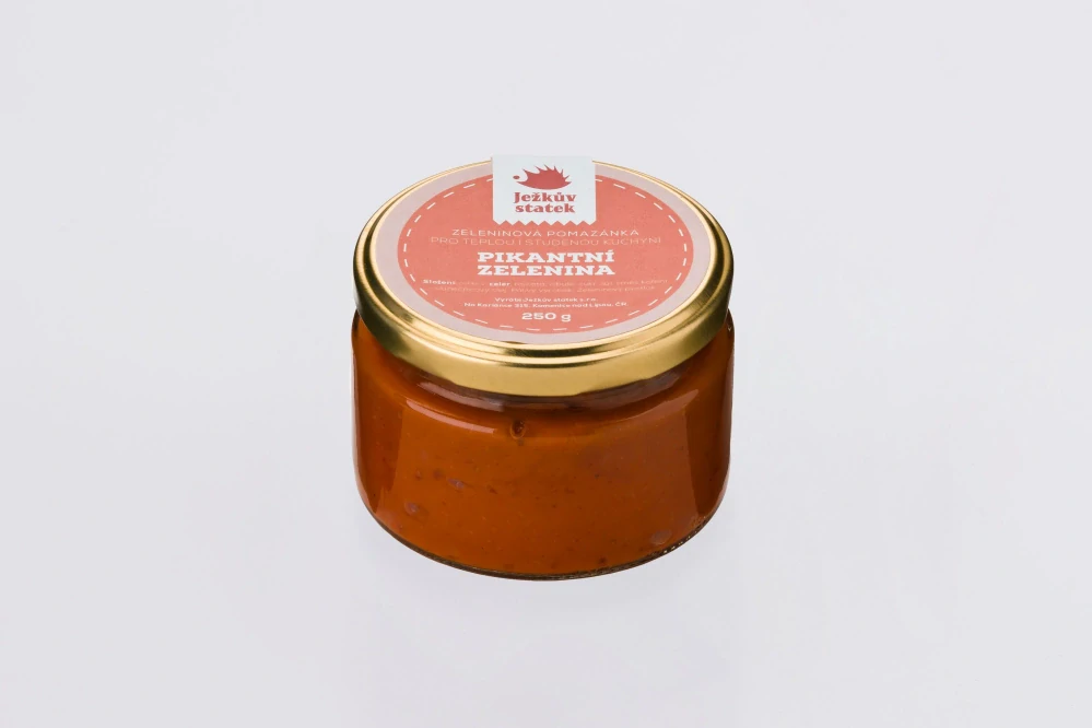 Středně pálivá jemná zeleninová pomazánka pro teplou i studenou kuchyni. Konzervováno sterilací.